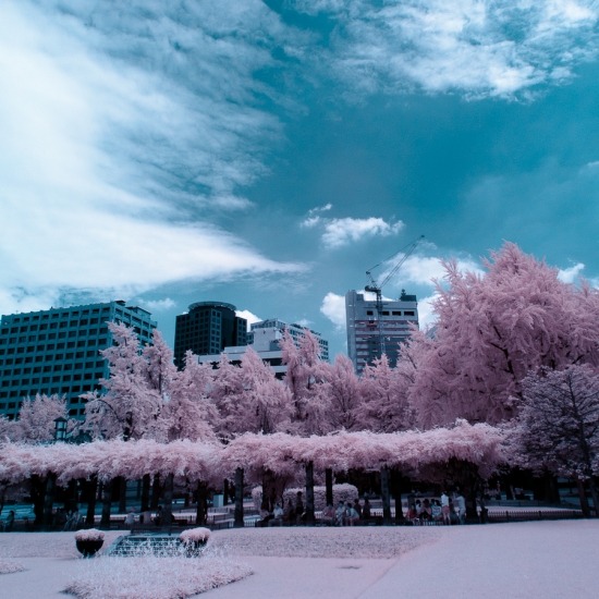 UV만 차단되어 가시광선 + 적외선만 들어오니 커스텀 화밸을 맞춰줘도 사람들의 옷샐갈이나 나뭇잎 색깔이 틀려집니다.