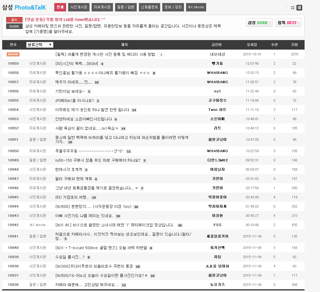 삼성 카메라및 렌즈와 관련한 사진, 질문/답변, 유용한정보 등을 자유롭게 올리는 공간입니다. 사진이나 동영상은 제목 앞에 [기종명]을 달아주세요.