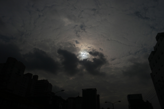흐린 하늘 구름사이로 태양이 보이길래 찍었는데 지구 멸망의 날 처럼 나왔어요..ㅎㅎㅎ