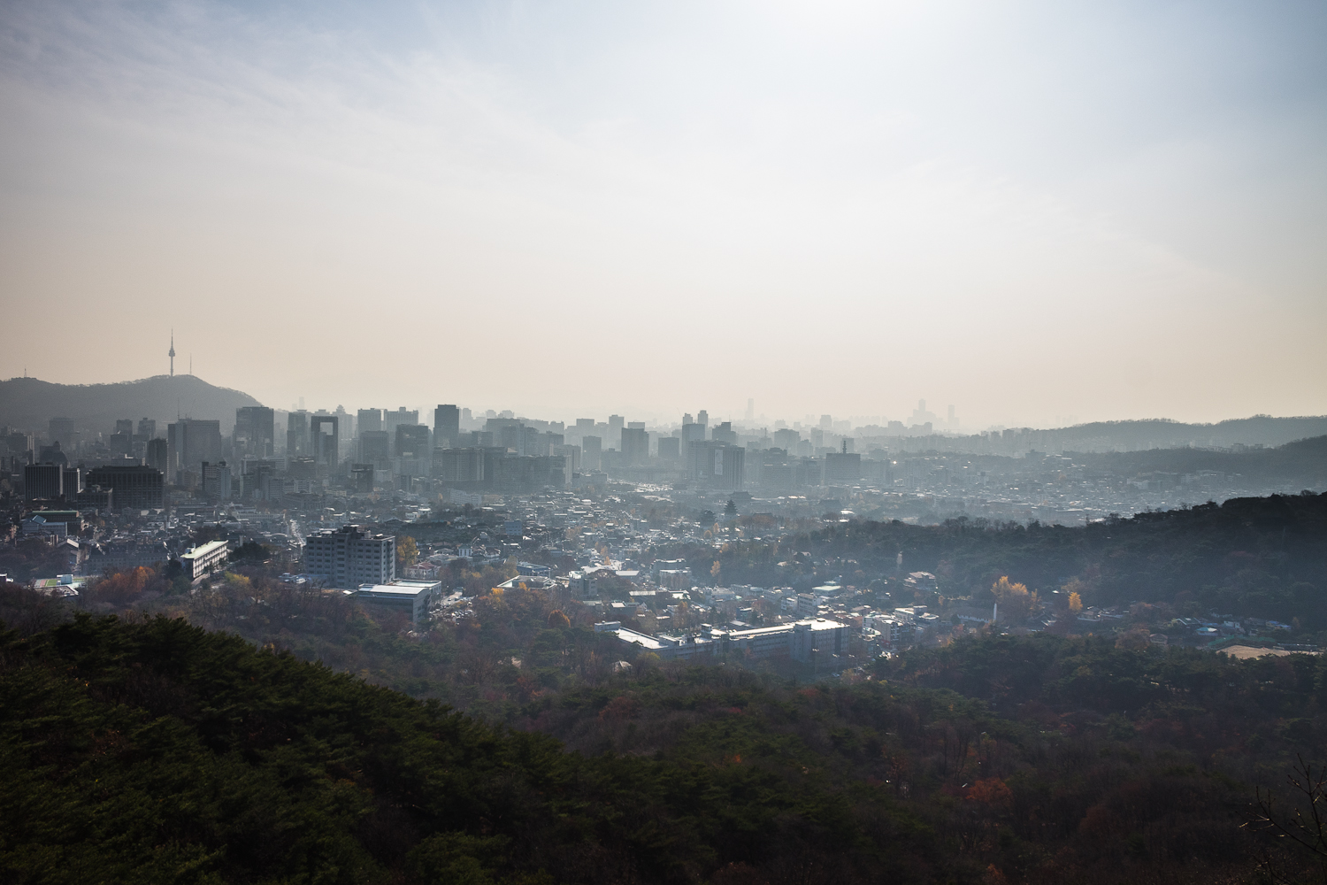 지난 주말에는 북악산 둘레길로 트래킹을 했습니다. 날이 나쁘지는 않았지만 서울의 스모그가 다소 심하더군요.