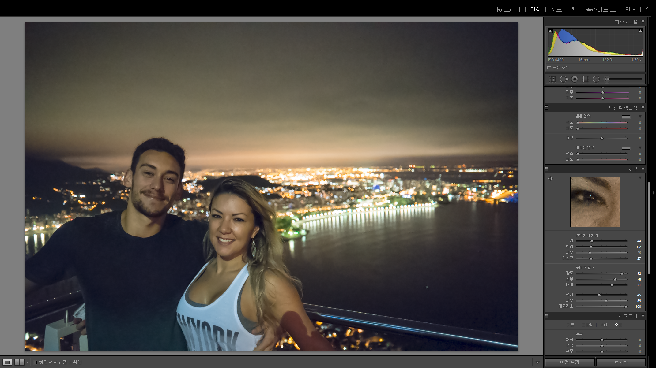 라이트룸에서는 과하다싶을 정도로 노이즈제거가 되었는데