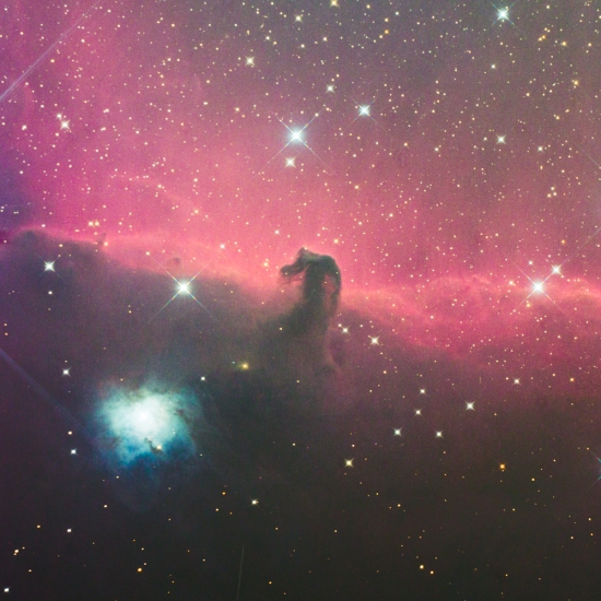 겨울철 별자리인 오리온자리에 있는 말머리 성운입니다.
