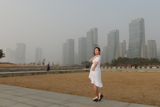 송도에 처음왔을때 두꺼웠던 해무가 조금씩 걷히고 햇살이 나서
