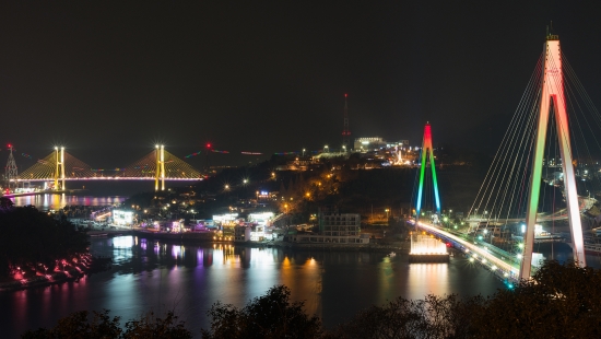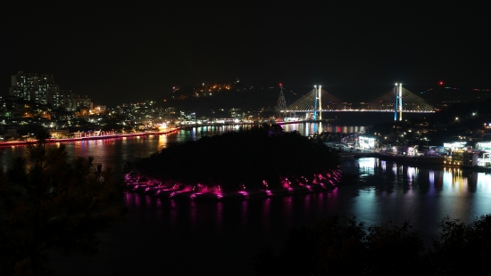위 사진은 충분한 노출량을 확보했을 때 돌산대교와 거북선대교 및 명부 부분에 화이트홀이 넓게 발생해서
