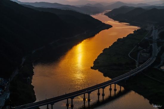 청벽 하늘에 노을이 물들고
