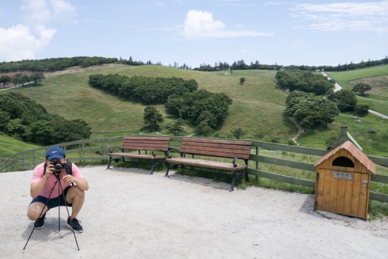 아래 사진은 애가 산에 올라가는게 힘들까봐 애가 탄 유모차를 끌고 위로 올라가면서 한 컷 찍는 모습입니다.