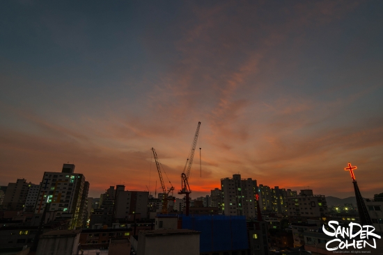 며칠 날이 꾸물꾸물하더니 하늘이 다시 불타는군요.