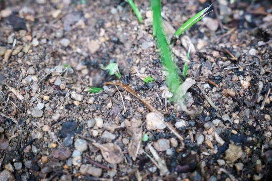 동쪽구멍의 개미와 서쪽구멍의 개미가 줄다리기를 하는 장면입니다.