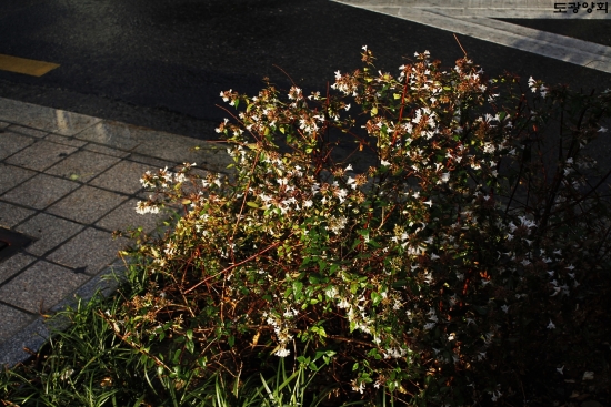 잠시 나온 햇살을 받은 꽃들