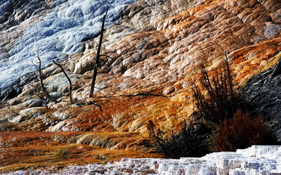 공원 여러곳 에 땅속에서 솟아나는 뜨거운 유황온천수 가 장구한 세월동안 흘러만들어낸 조각품들입니다.