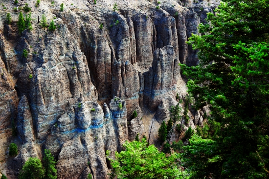 푸른 띄 가 보이는 절벽 입니다. 신기한 지형입니다. 사진 왼족 아래부분 에 아주작은 흰 점 이 잘찾아보면 보이는데 ㅎ