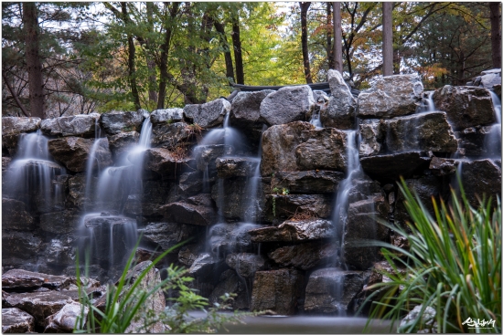 조경으로 만든 인공폭포인데