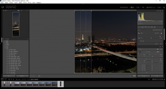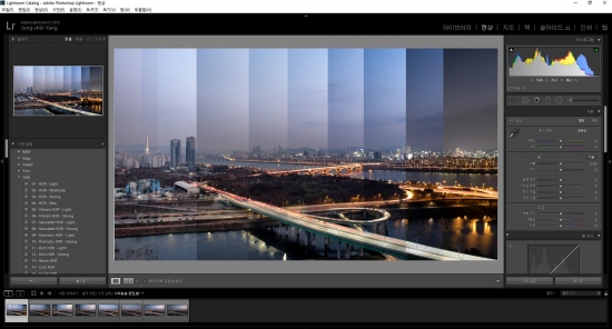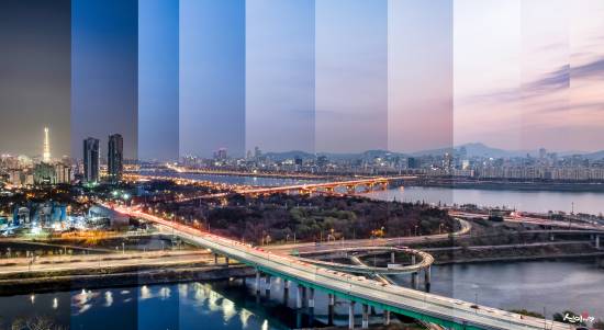 이때 삼각대를 이용 한 자리에서, 같은 장소를 계속 낮부터 밤까지 여러장 찍습니다.