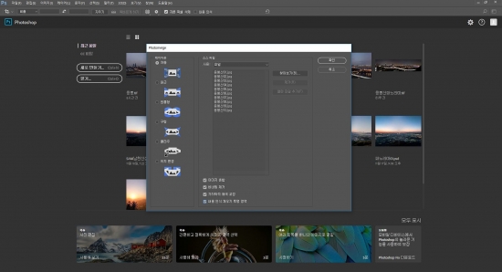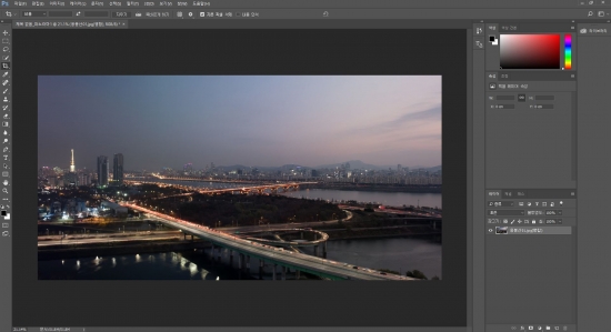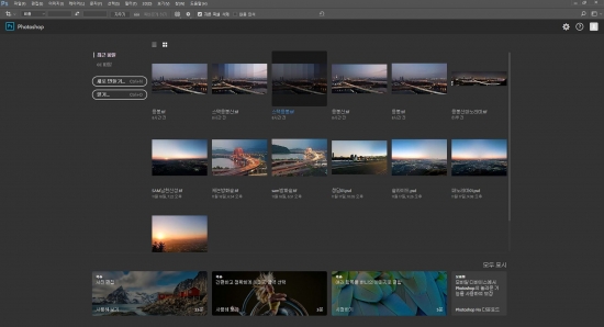 이제 포토샵으로 파노라마를 돌리는데요. 우선 포토샵을 열고...(라룸에서 작업하셨으면 잘라내기한 모든 파일을 고른 후 우클릭 '응용프로그램에서 편집' - '포토샵에서 파노라마로 병합' 을 클릭하시면 됩니다.