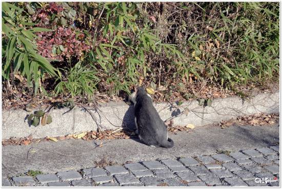 보너스로 추워서 풀숲으로 숨는 길냥이 >.<