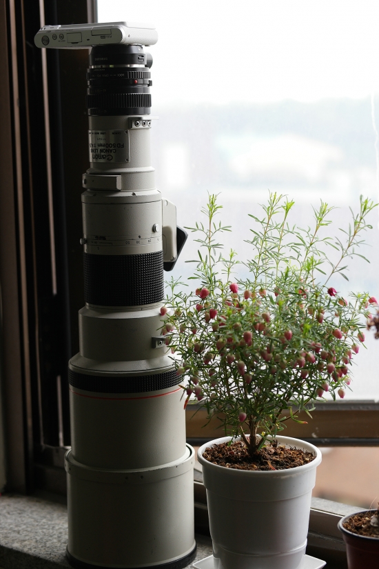 옆동네에서 저렴한 대포 하나 입양했습니다. 두배 컨버터까지 60만원, 150-600 줌렌즈와 비슷한 가격이지만 아무래도 단렌즈가 좋을것 같아서 질러봤습니다. 벗꽃 피면 한번 도전해보려구요^^ 미니에 끼니 500 * 2 * 2.7 = 2700mm 가 되네요. 아무래도 미니에는 2배 컨버터는 끼지 말아야할듯 합니다. 그냥 1350mm도 초망원이되니 대포에 미니를 장착하니 너무 앙증맞네요.