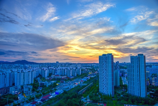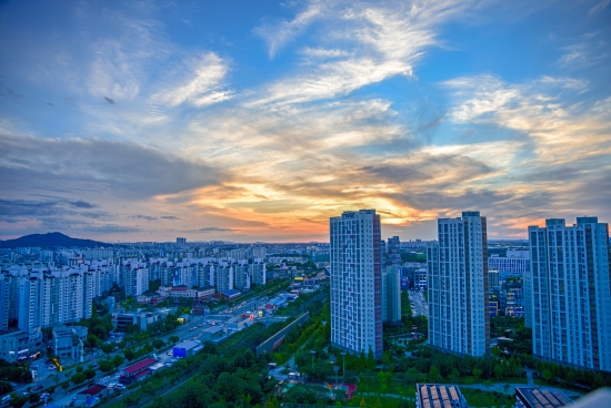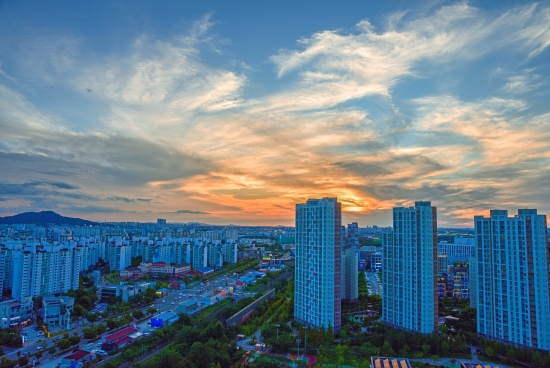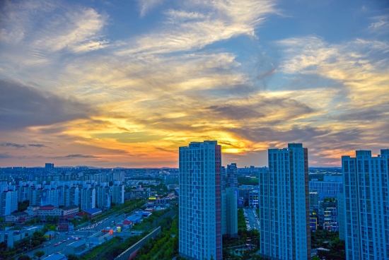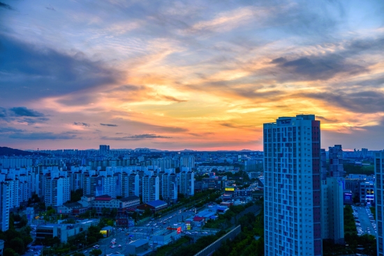 요즘 노을은 저번 같이 붉게 물들지가 않네요.