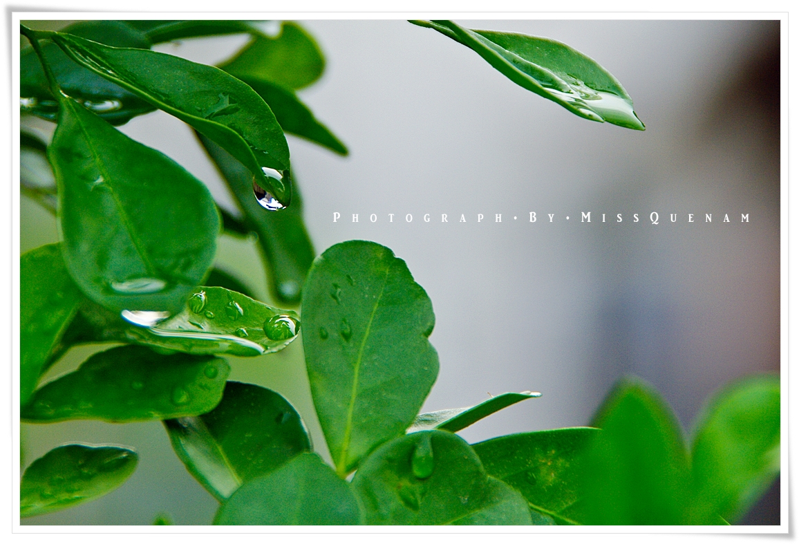 잎사귀에 맺힌 빗방울..