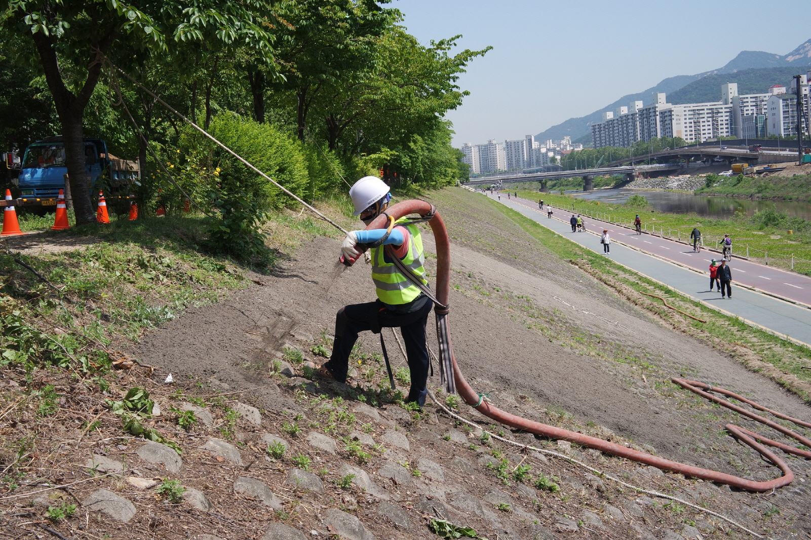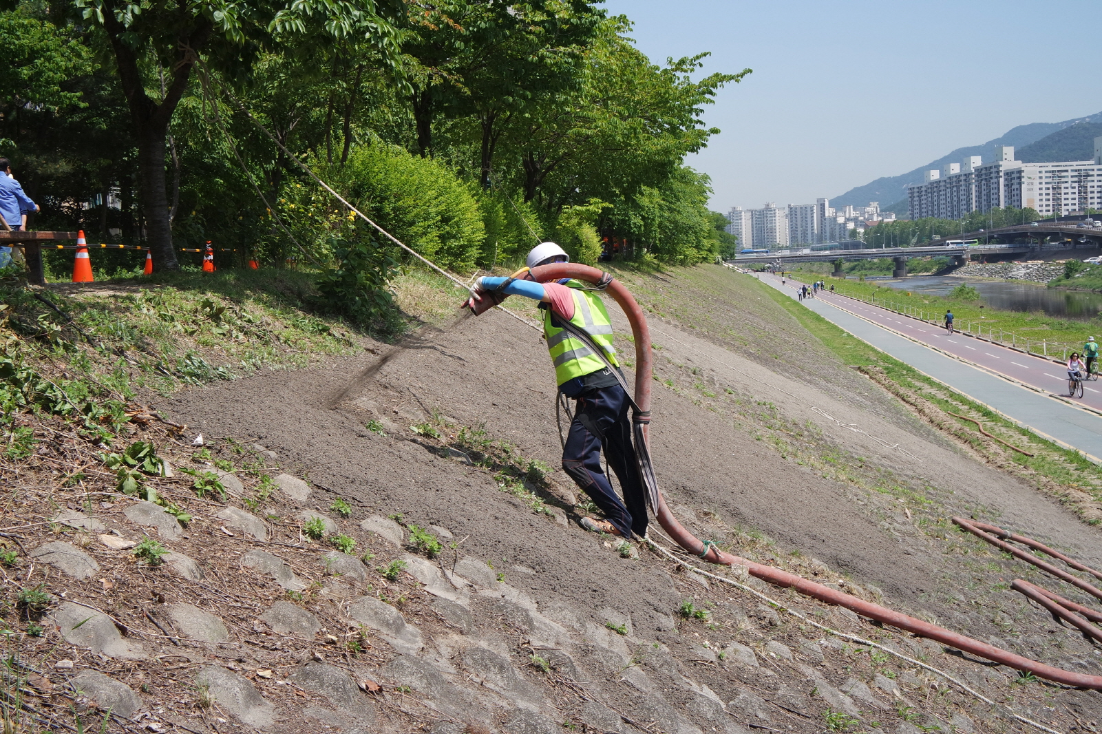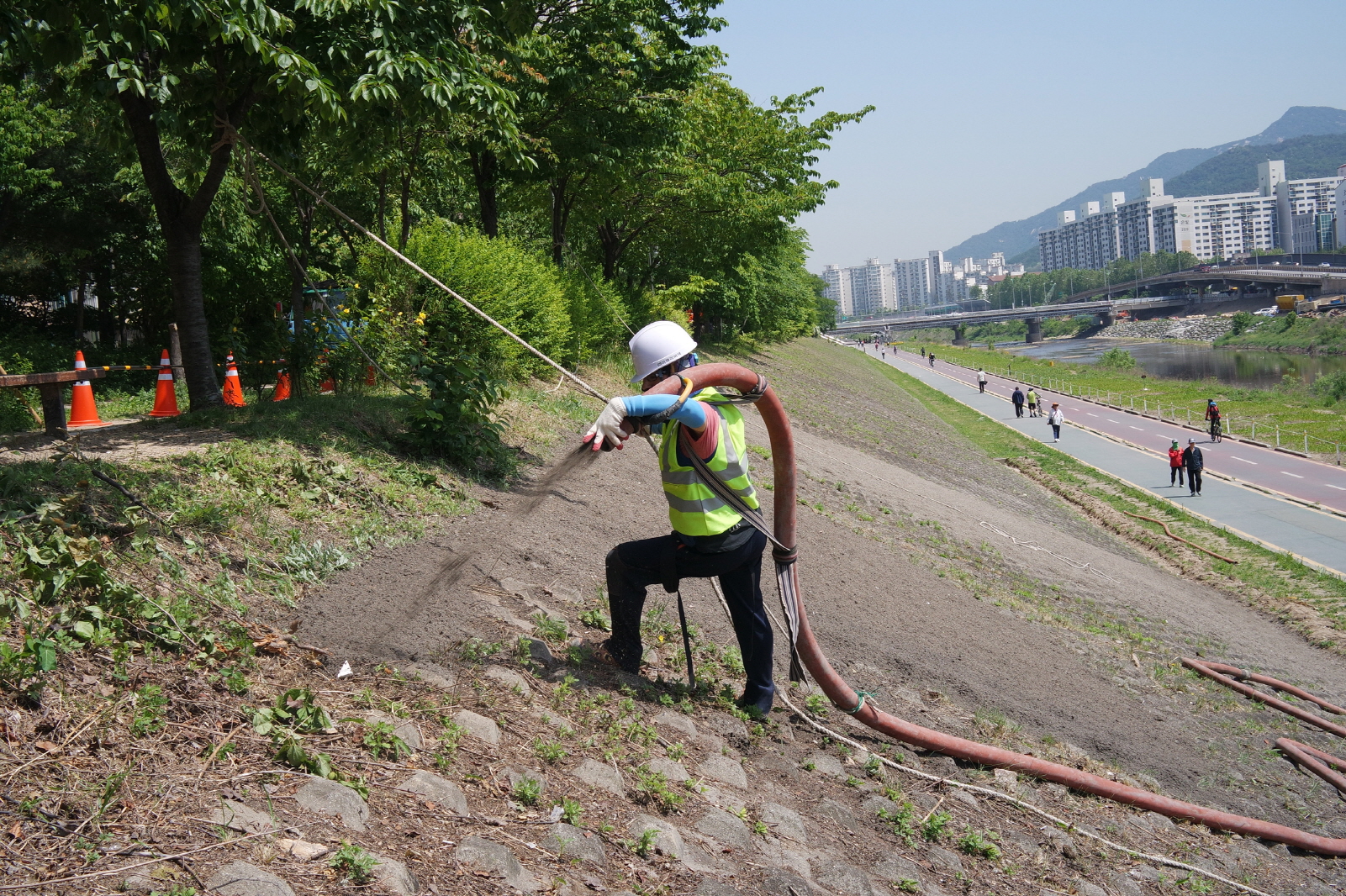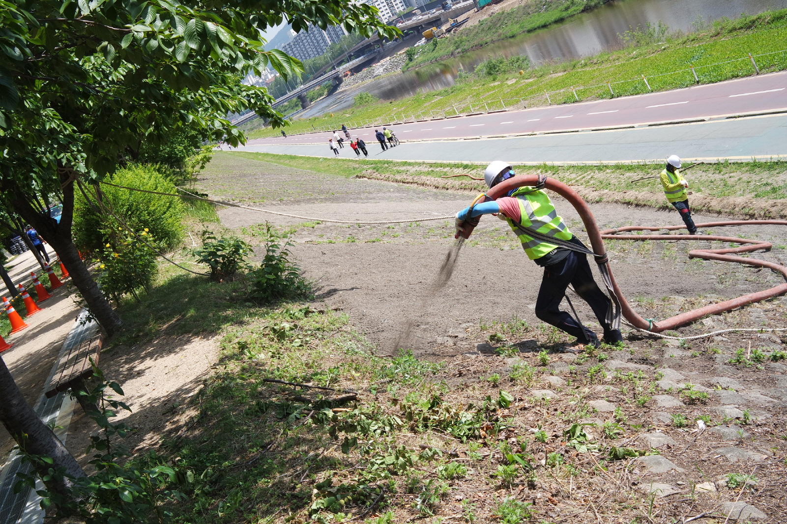 사진과 같이 살포한 후, 그 위에 천을 씌우고 다시 그 위에 닭똥을 뒤덮고 또 다시 그 위에 꽃을 심을 예정이랍니다. 무플러라 댓글을 달지 않으니 답글이 없더라도 상처받지 않으시길 바랍니다. ps. 댓글 달아주신 분들 모두 감사합니다.