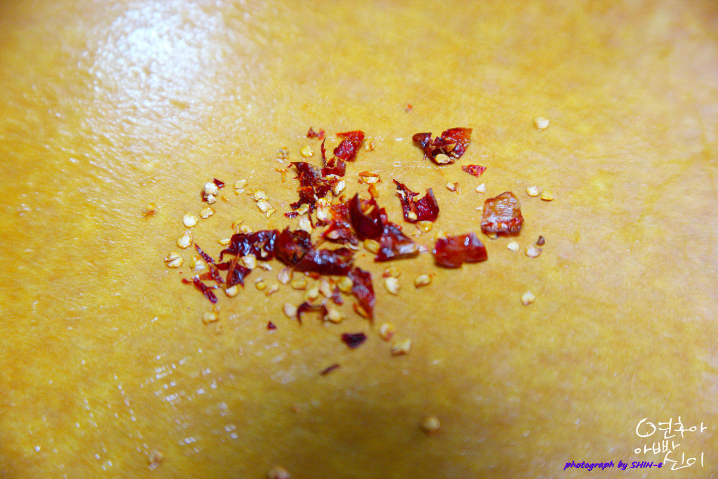5. 매콤함을 위해 페페론치노를 잘게 다져 넣어 볶아주세요.