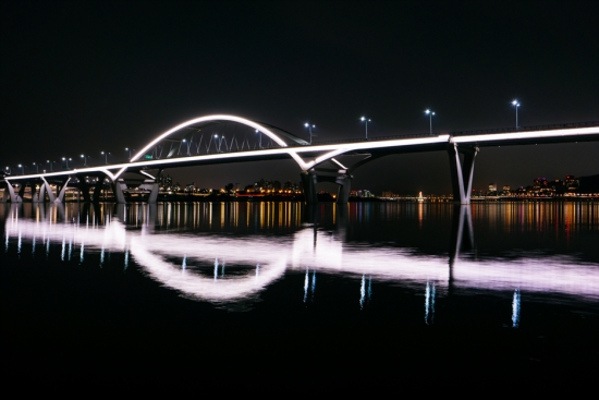 조명이 독특하게 면발광을 두른 듯한 구리암사대교