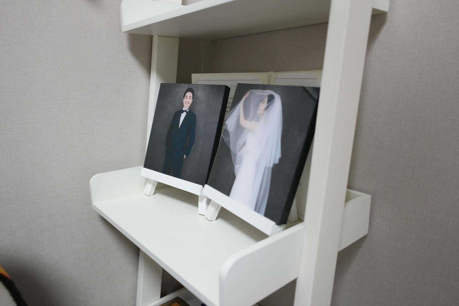 한쪽구석을 지키고있는 결혼사진..
