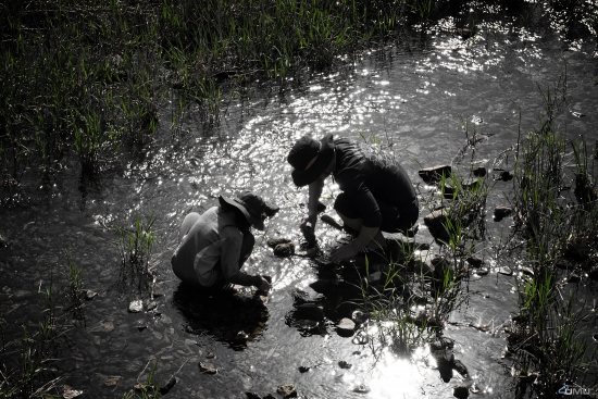 피라미 송사리떼 줄지어 여울 오르고