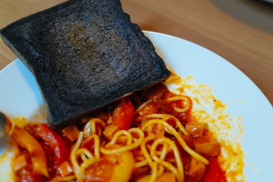 먹물 빵이라서 까매요 ㅎㅎ 다시 구워서 먹으니 바삭하니 맛있네요!