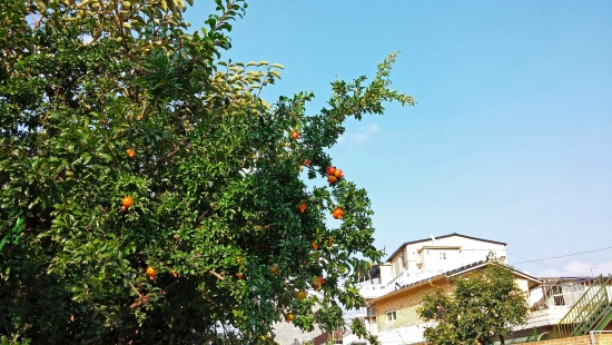 마눌님 심부름 으로 재래시장 다녀오다, 어느집 담장에서 가지를 넘긴