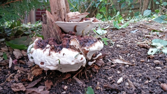 10년전 쯤 베어낸 화단의 감나무 밑 둥치에서 저 버섯이 있어서 오늘 땄는데요...