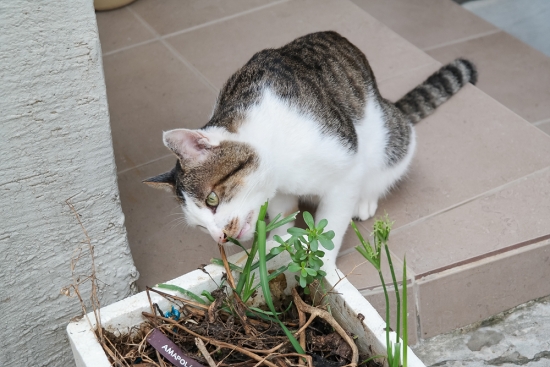 아마도 헤어볼을 뱉어내려는 모양입니다.