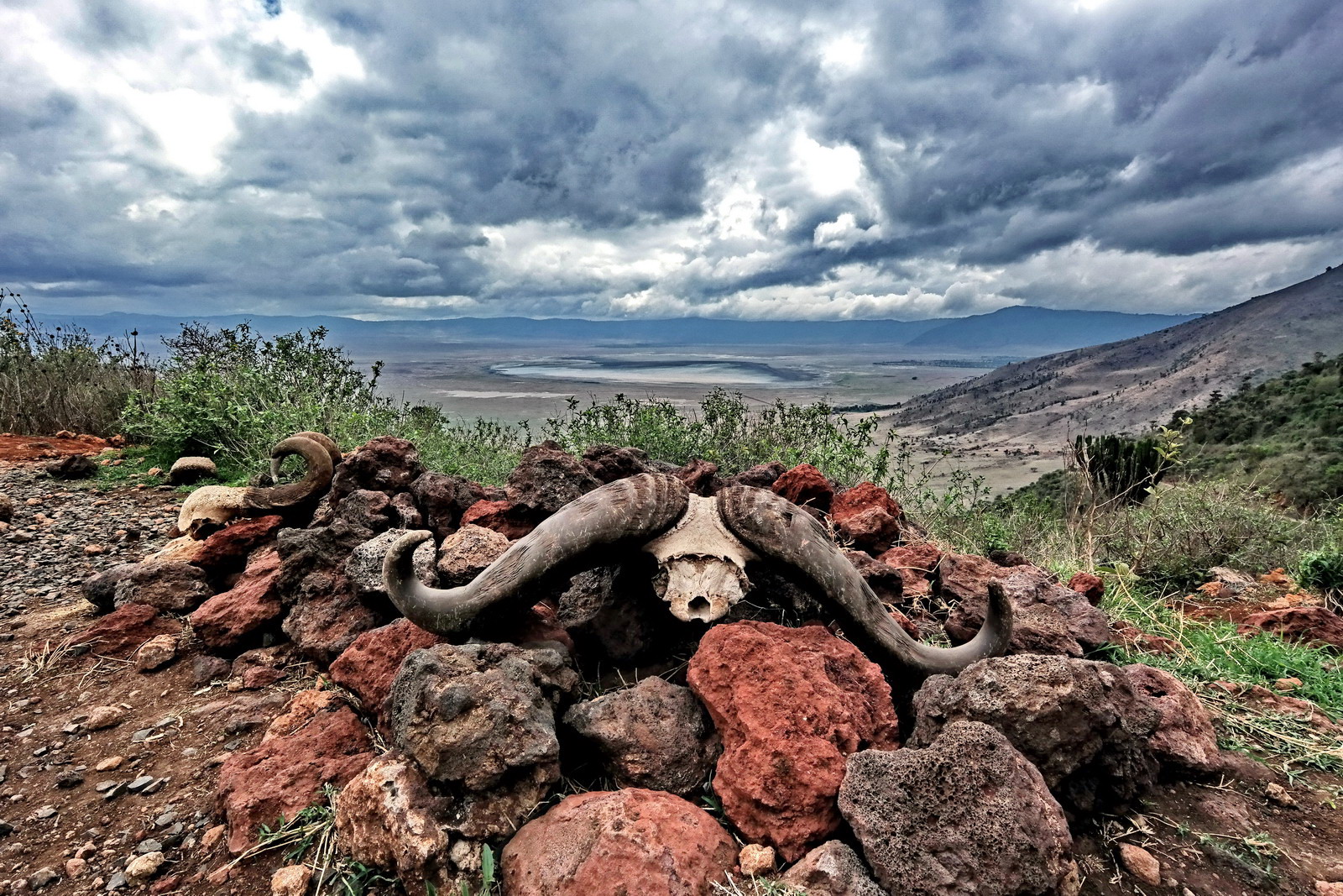 응그롱고로 분화구로 내려가기전 감시초소앞에서 담아본 분화구와 주변풍경입니다.