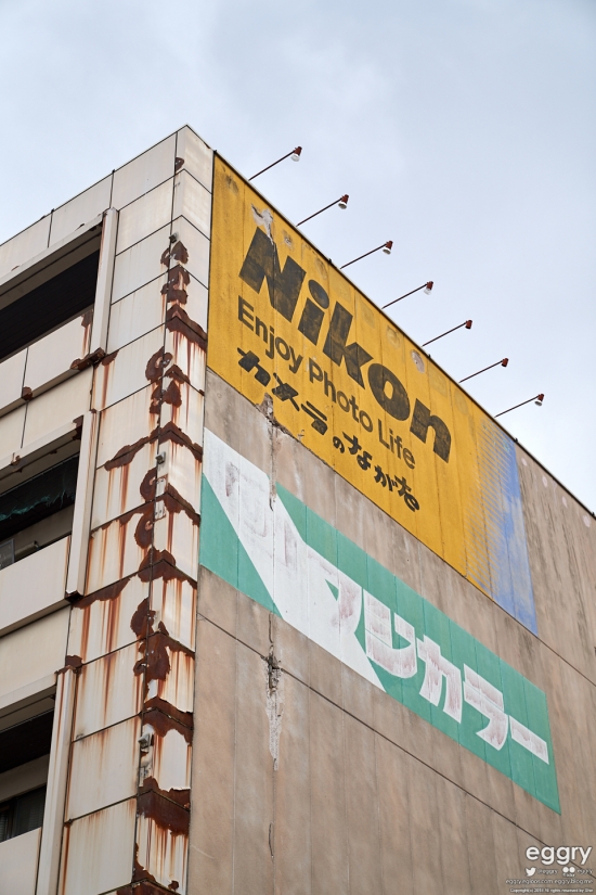 광고가 엄청 오래된 카메라, 사진 쇼핑 빌딩.