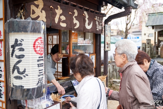 타카야마 명물(?) 미타라시 당고. 단 맛이 전혀 없고 간장 간이 된 게 특징입니다. 약간 어르신 간식 같은 느낌.