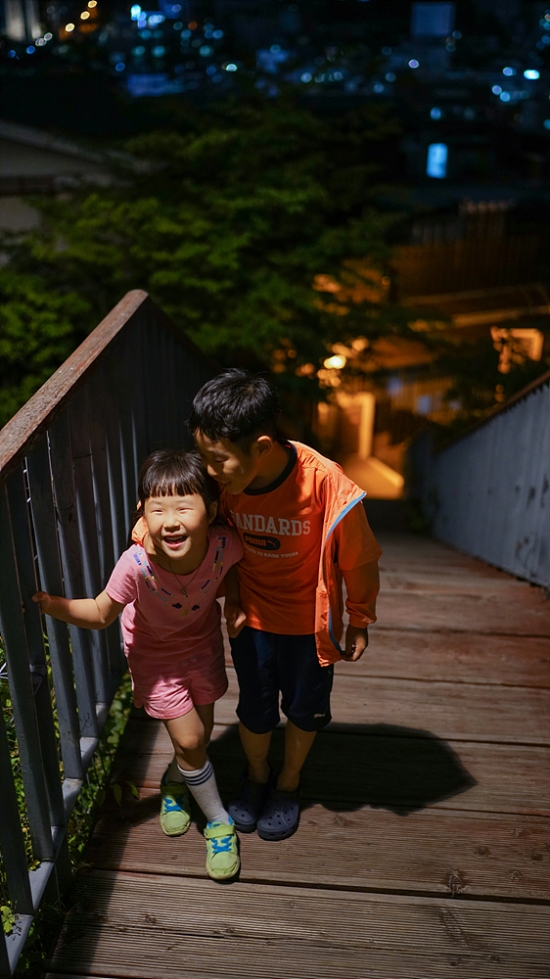 조명 아래서 환하게 웃는 아이들