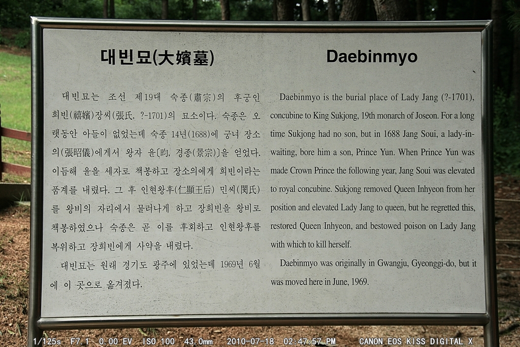 그리고 지금 드라마에서 방영되고 있는 희빈장씨의 대빈묘로 이루어져 있습니다.