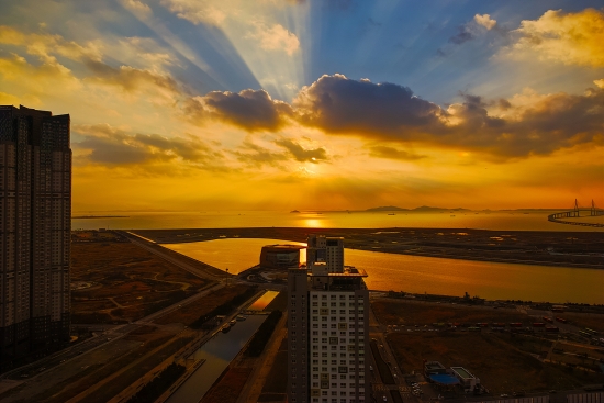 올초 겨울에 찍은 저녁무렵 송도 G타워에서 찍은 사진입니다.