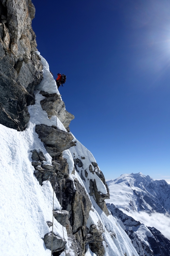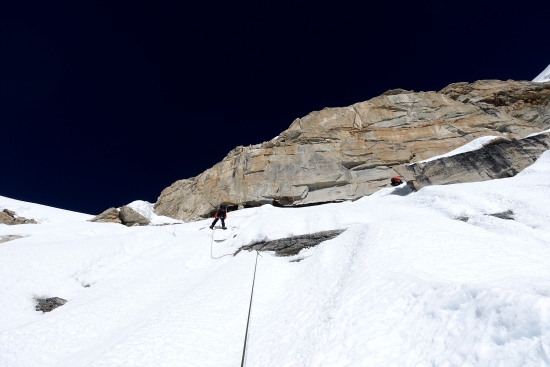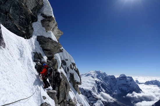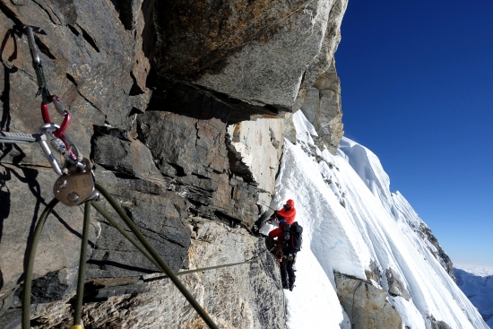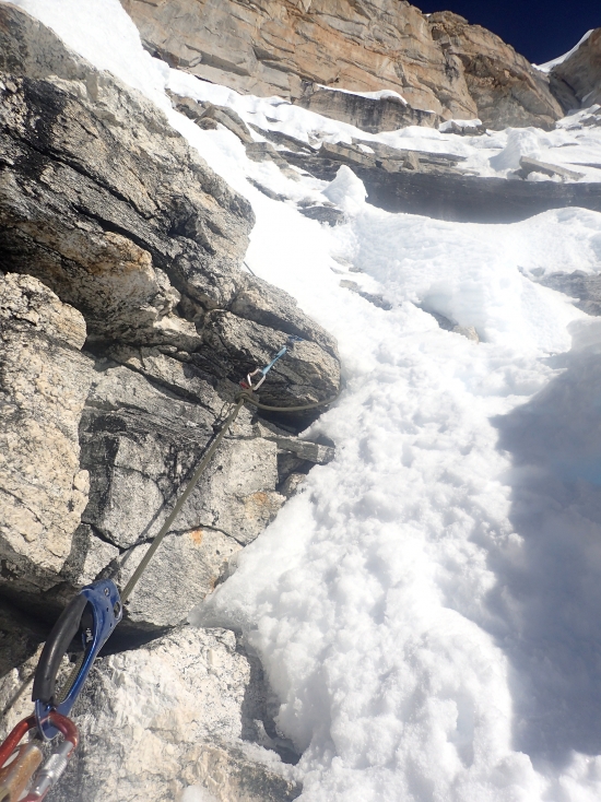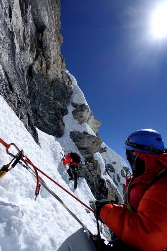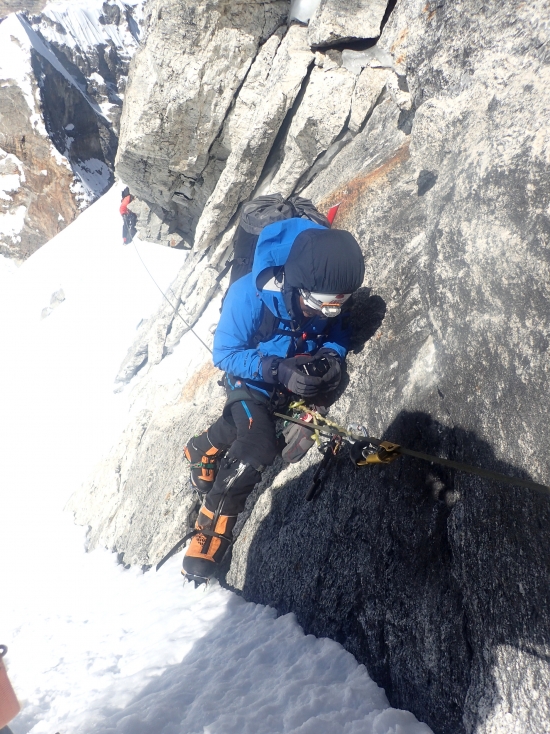 가끔 바위도 올라갑니다. 왠만하면 눈, 얼음으로 가는데 선택의 여지가 없을 때도 있어요. 절대 떨어지면 안되죠.