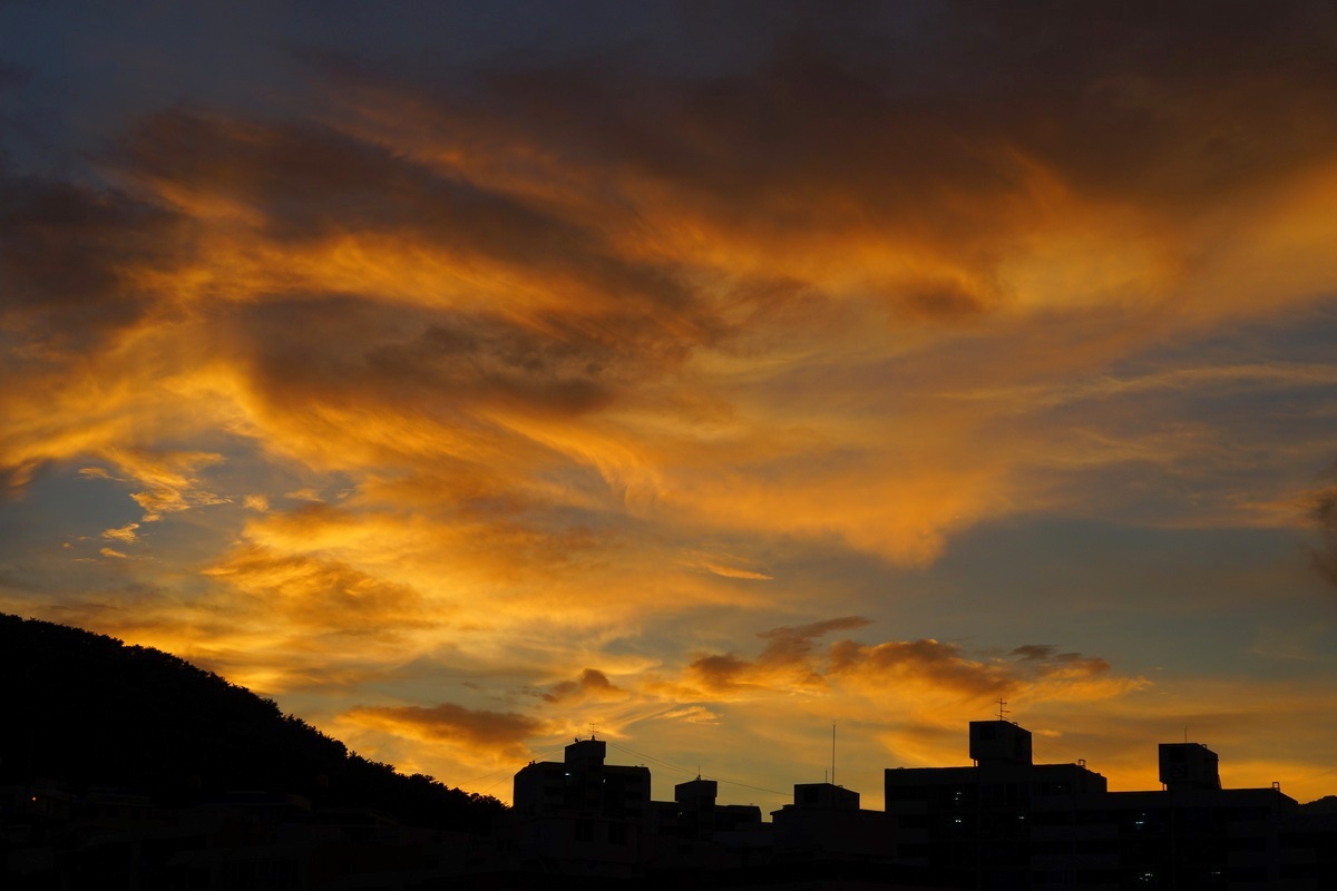 북서쪽 하늘이 보이는데 가끔 멋진 노을을 보여주곤 합니다.