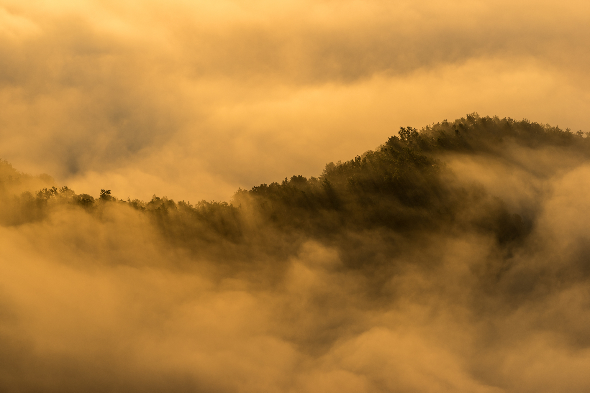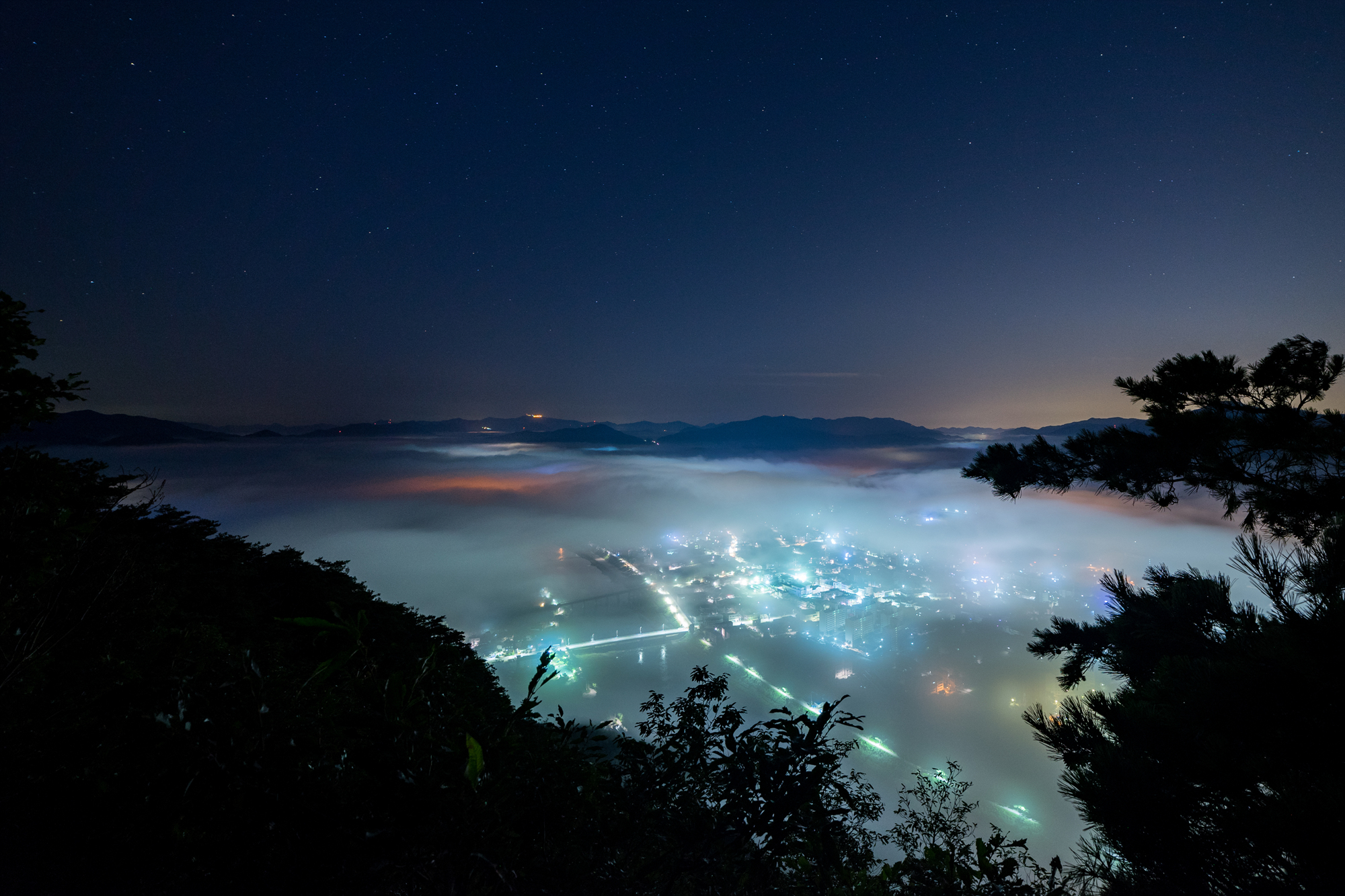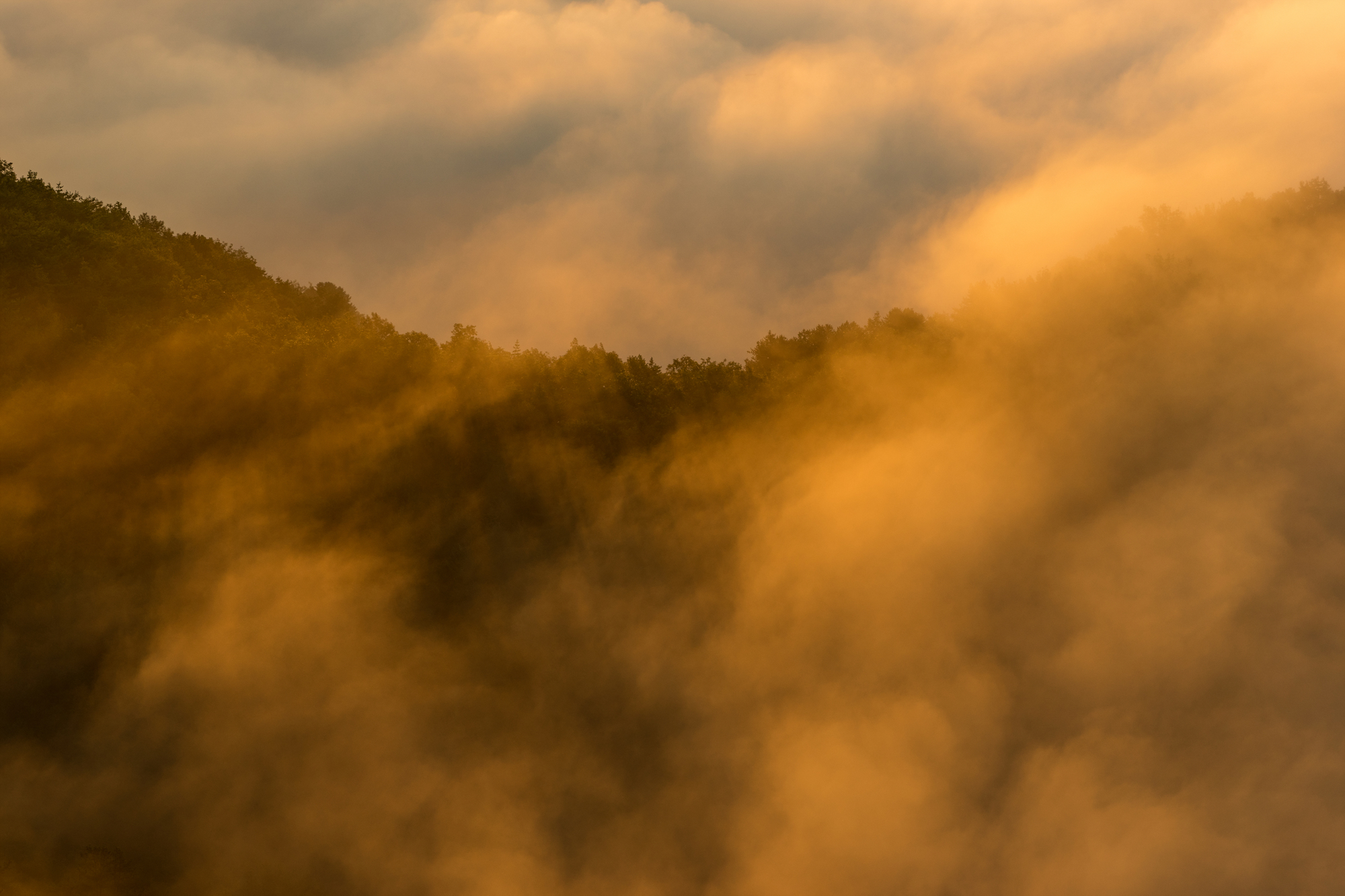 운해가 산능선을 넘어 흘러들어오고