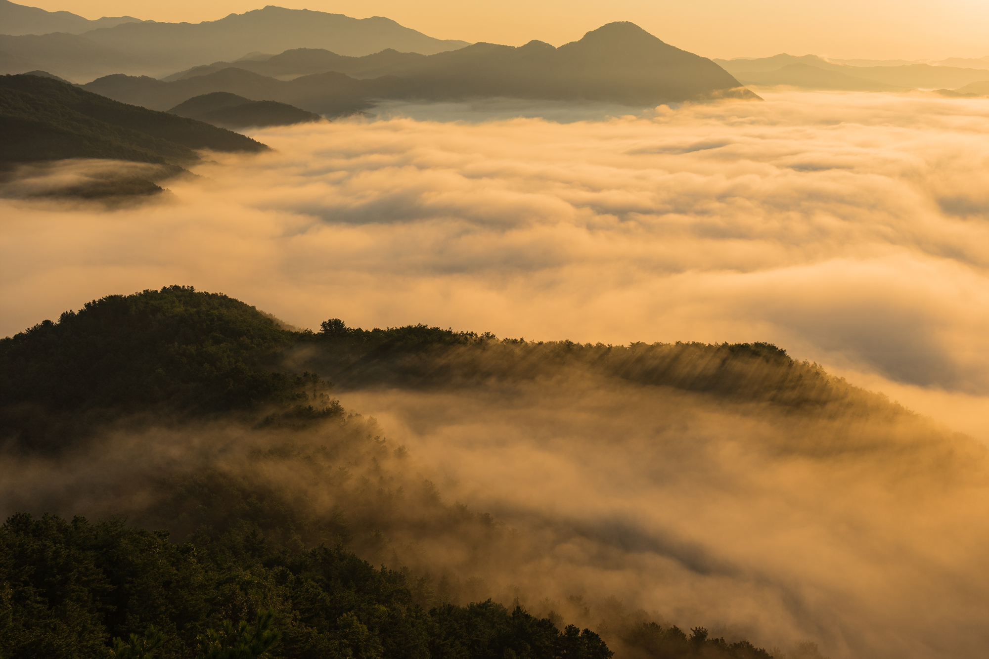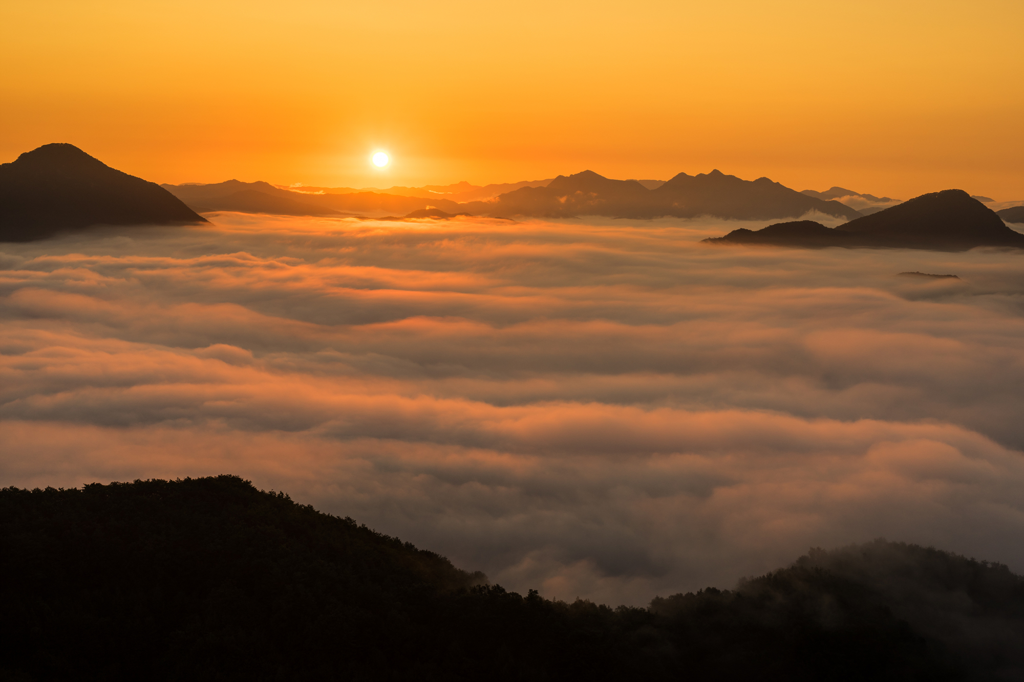 떠오르는 해의 빛을 받아 운해는 한층더 아름다워집니다.