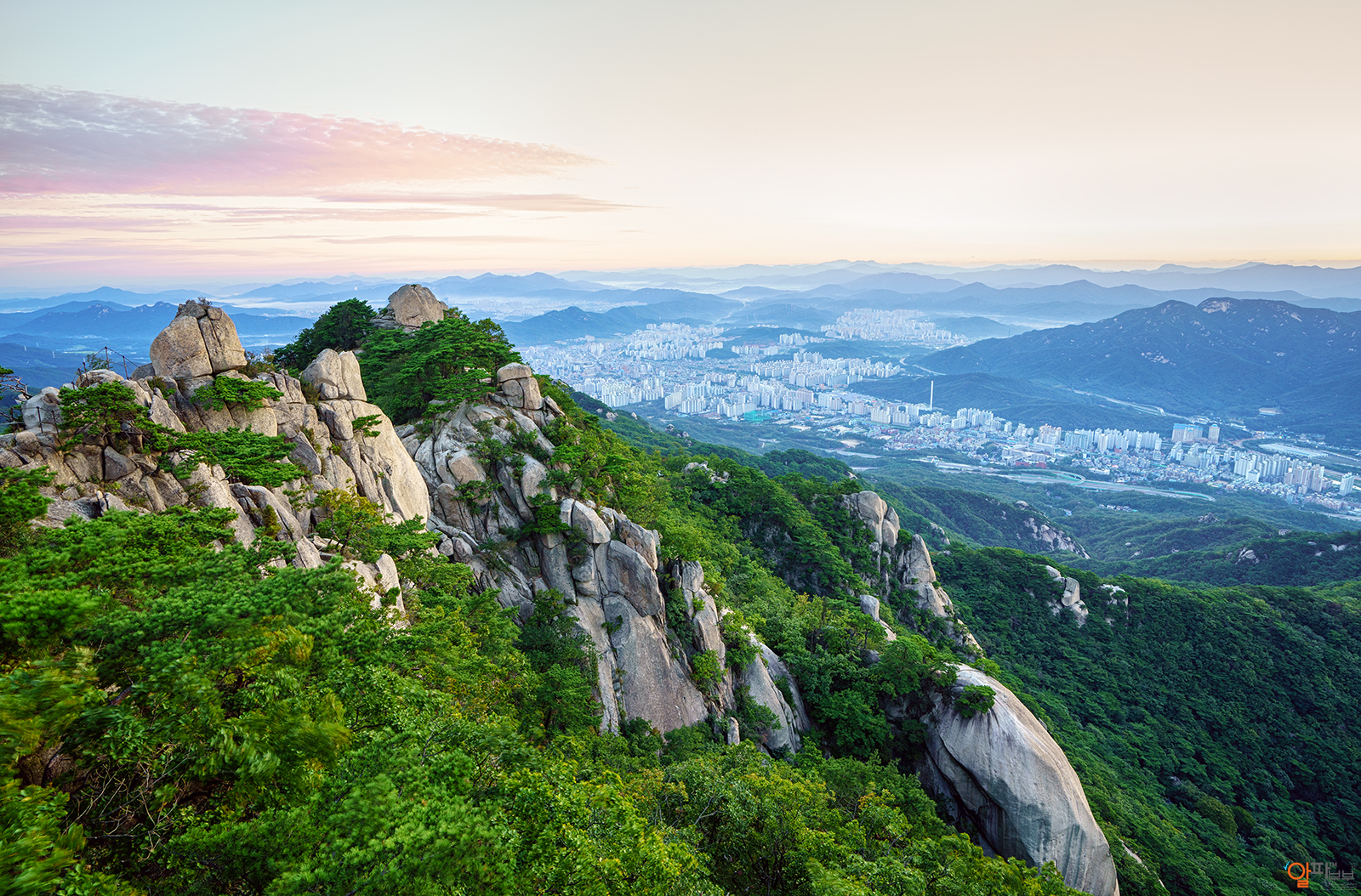▲ 솟아오른 태양은 의정부 양주쪽 하늘 위로 수줍게 살짝 드리운 새악씨 구름에게 연분홍 연지를 선사합니다