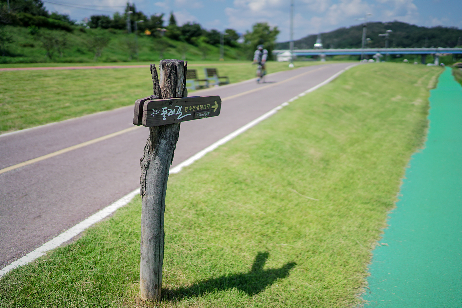 어깨에는 카메라를 손으로는 자전거를 신나게 밀며 가고 있는데