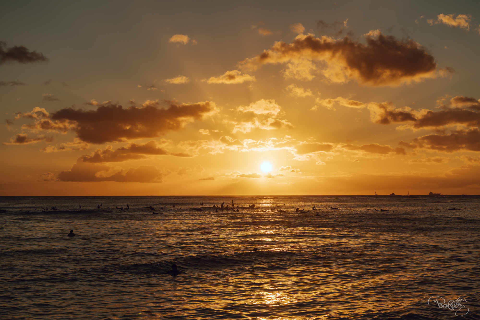 와이키키해변은 일몰로도 유명한 장소라고 하더군요.