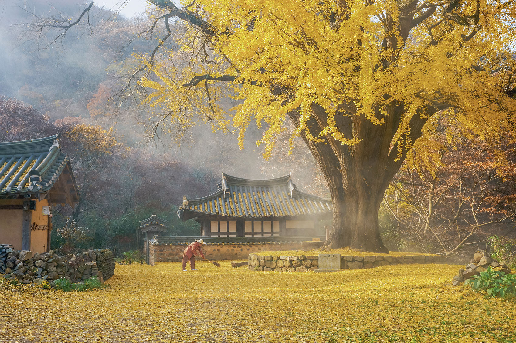 올해 경주 운곡서원의 은행나무는 강한 바람이 불어서 잎이 물 들기도 전에 모두 떨어져서 시즌이 허무하게