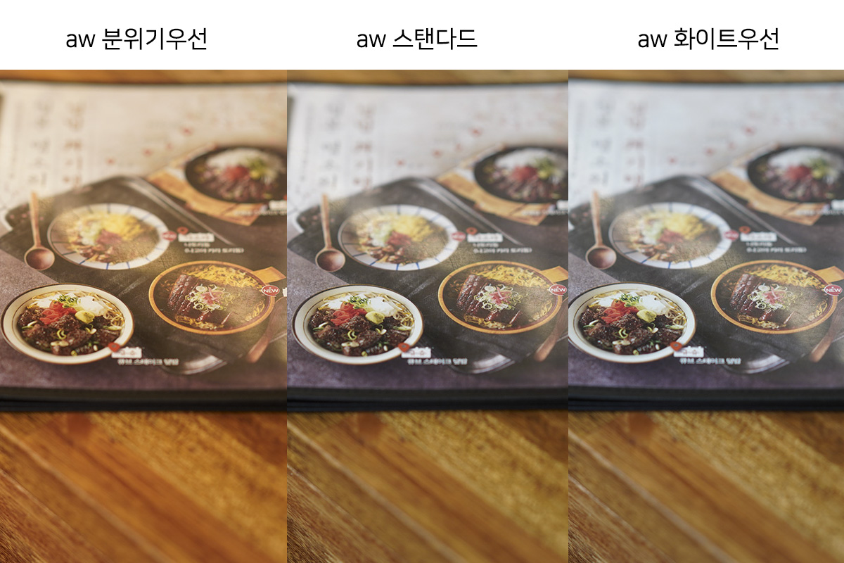 아시다시피, R2에는 없던 셋팅이 R3에 들어가 있는데..바로... AW 기본/분위기우선/화이트우선 셋팅이죠~!!