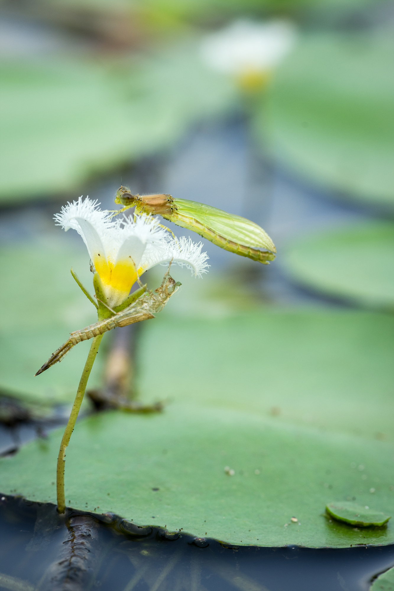 어리연 위 실잠자리 우화