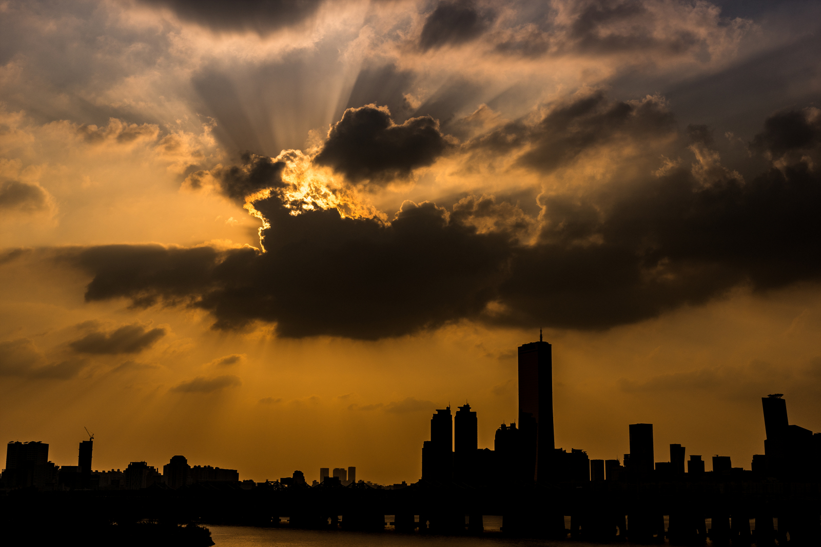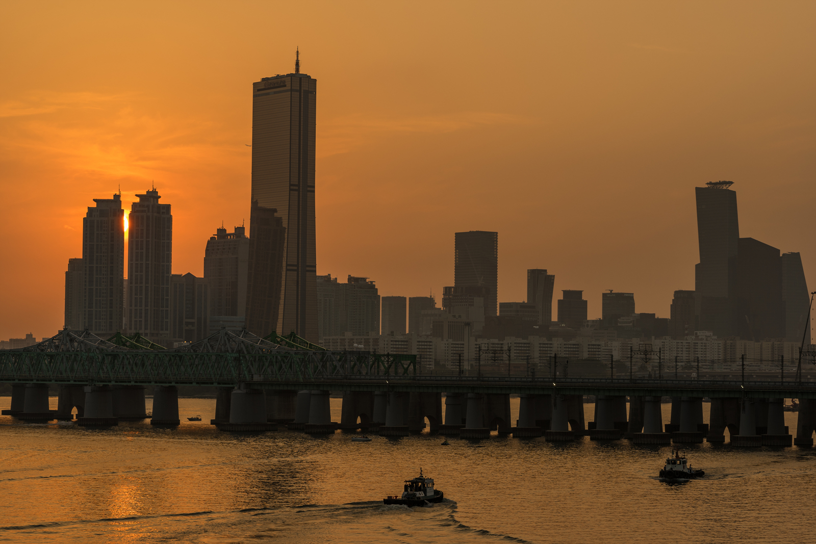 한강대교 위 돗자리사이 빈 공간에서 담아야 했습니다.