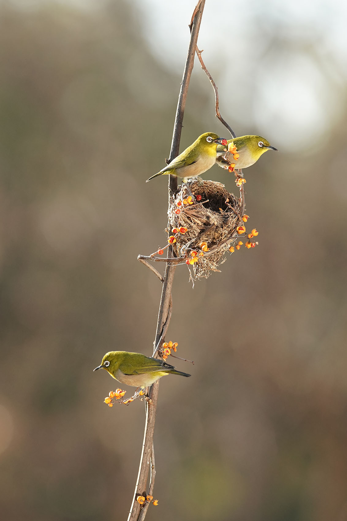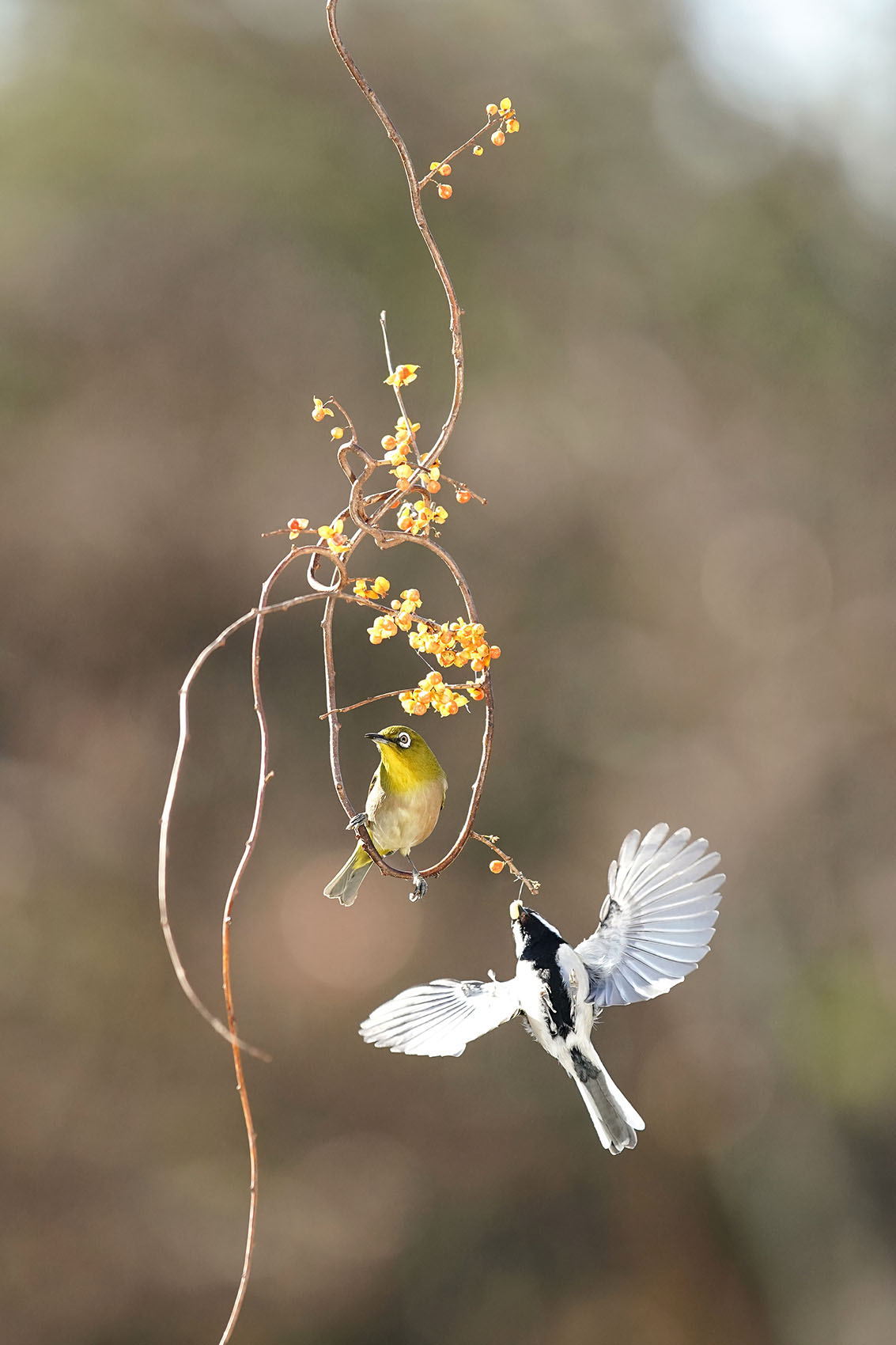 새해 첫날에도 동박새와 곤줄박이의 재롱에