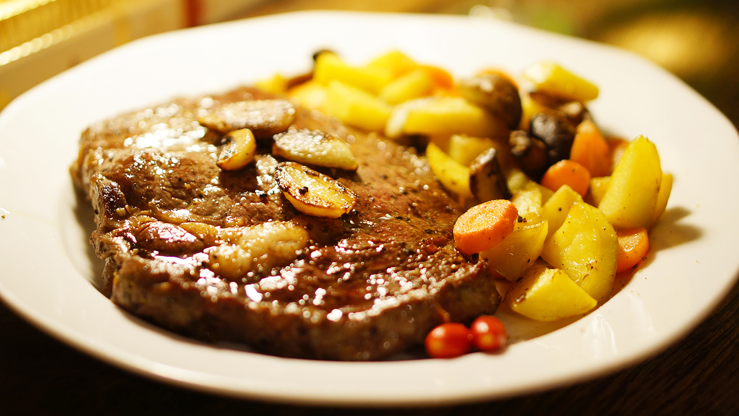 미디움레어로 익힌 쇠고기 스테이크.